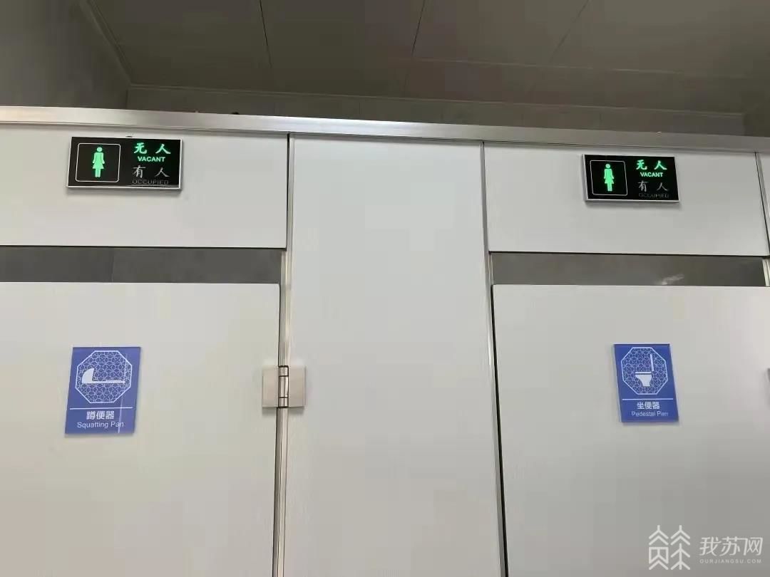 此外,公厕还配备了感应式负压收集除臭系统、新风系统与智慧厕所管理系统。智慧平台通过感应监测设备,能够实时获取厕所及周边的天气情况、温湿度、厕所使用状态等相关数据,每个厕位上方还安装有显示灯,市民一迈进门,厕位使用情况就一目了然。