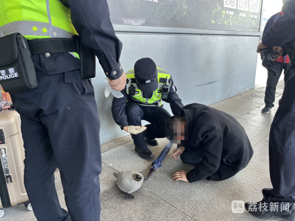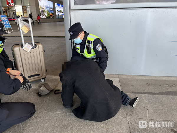 11月8号下午2点多,南京市公安局特警支队武装巡逻一大队民警与南京南站联防步巡的过程中,发现一名男子瘫坐在路边,神情痛苦,民警赶忙上前询问情况。