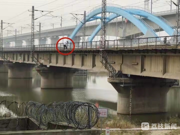 记者今天(11月9日)从连云港海州警方了解到,近日当地一名小伙子因家庭琐事想不开,遂爬上铁路大桥护栏,欲跳河轻生。而他当时的头顶上方,则是2万多伏的高压电线,且所处位置恰好又是火车必经之处,险情十分严峻。万幸的是,民警飞身将他救下不久,火车便从此处开了过去。
