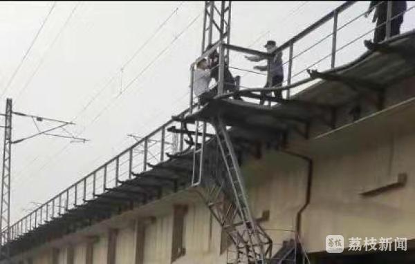 铁路公安反馈,该铁路桥上有27500伏高压电,每天下午3点都会有一班火车经过,如不及时将其救下,后果难以预料。民警当即协商铁路公安,申请该班列车减速,同时不断喊话,稳定欲轻生男子的情绪。