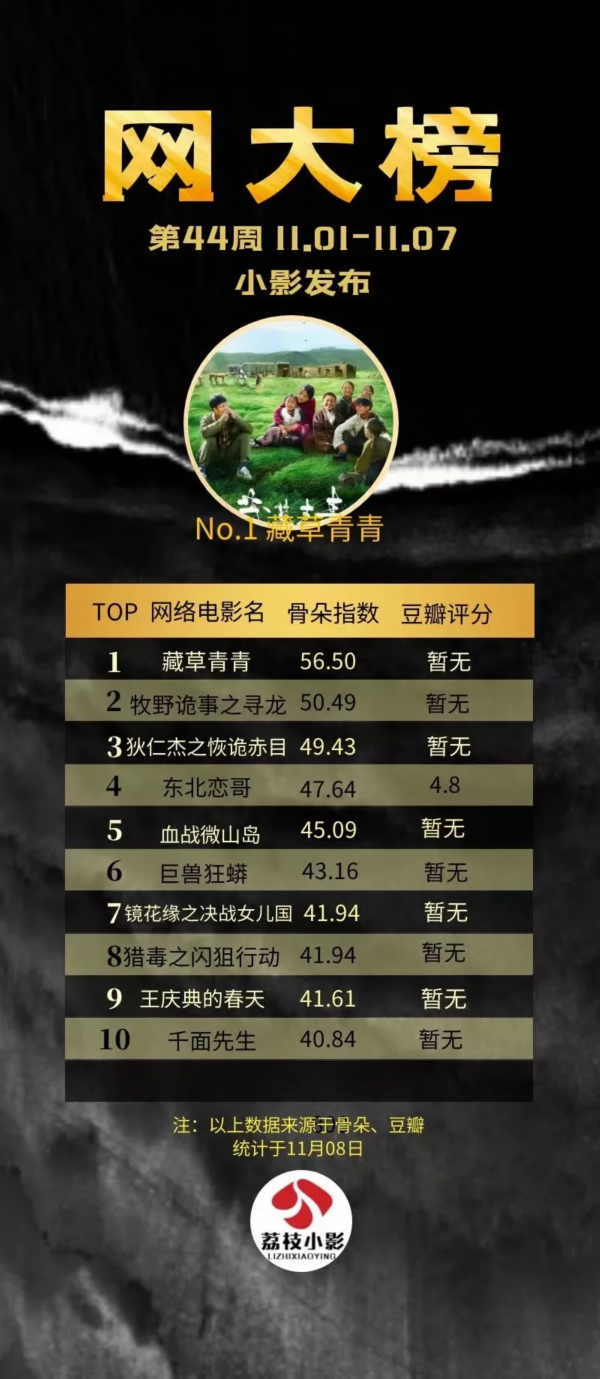 本周网大有四部新片突围,分别是爱奇艺平台的《藏草青青》《狄仁杰之恢诡赤目》《猎毒之闪狙行动》,及腾讯的《牧野诡事之寻龙》。