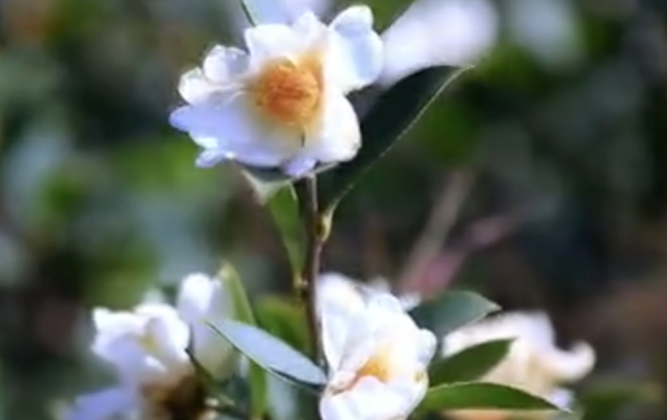 油茶,是我国特有物种,又叫茶籽树、茶油树,是茶科植物,因其种子可榨油,所以叫油茶。油茶花花期较长,每年11月份开始开花,一直持续到次年2月初,而目前是最佳观赏期。油茶花开花时,会结出果实来,所榨出的油,营养价值能和橄榄油相媲美。对于山民来说,这些果子就是大山的馈赠。