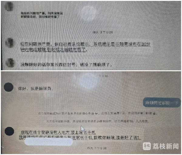 “您的微信账号已被冻结,请在30分钟内找到解除员完成微信解冻。”突然弹出的一条系统提示吓了小李一跳,因为害怕就主动找到聊天群中的解除员。在对方指导下,小李拿了爸爸的手机打开支付宝扫了解除员提供的二维码,等李先生拿回手机发现少了6000元钱。