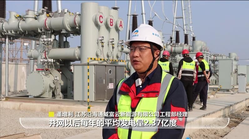 江苏沿海通威富云新能源有限公司工程部经理董增利介绍,11月份全容量并网,并网以后每年平均发电量约为2.37亿度,同火电相比,每年燃煤可减少7.32万吨,减少二氧化碳排放18.2万吨。
