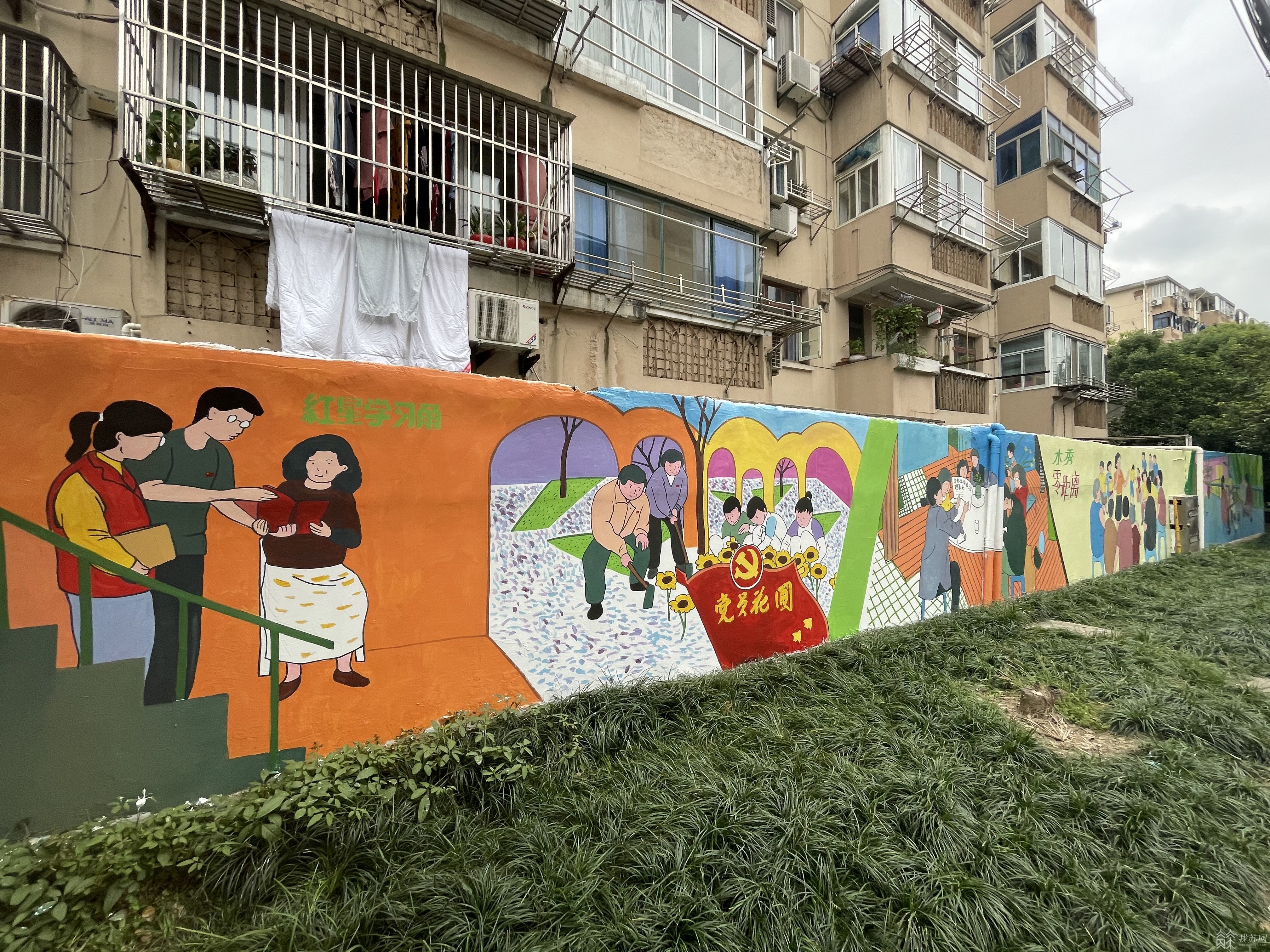 改造好的水秀一纵路上,只见灯箱、宣传栏、地标造型等位置遍布党史知识点,“看书”变成了“听书”,党员群众在徒步过程中,就能利用碎片时间进行党史学习,接受红色教育,随时乐享有声“党史”。一幅百米长的社区党组织带领党员居民群众共同学习党史的“同心墙”长卷画,格外引人注目,这里描绘了党员中心户送学上门、广场宣讲、楼道红星学习角等新的“党史教育阵地”,也是一段段红色精神薪火相传之下的水秀“学史力行”的奋进故事。