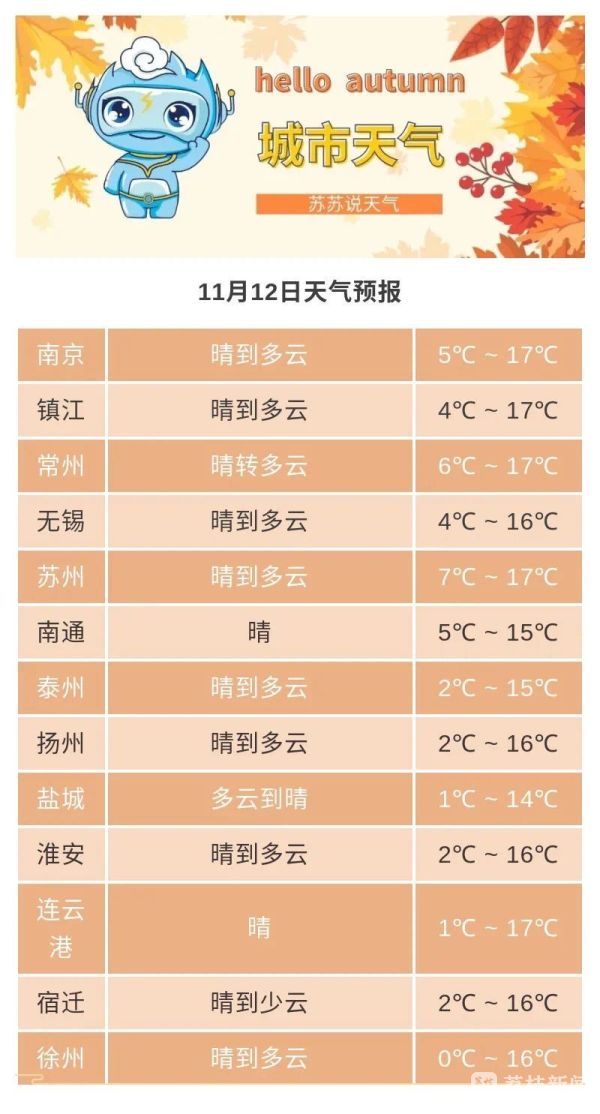 白天阳光灿烂,午后气温回升。最近几天的江苏,蓝天在线,阳光温暖。白天大部分地区最高气温升至15-17℃左右,但早晚气温还是比较低。