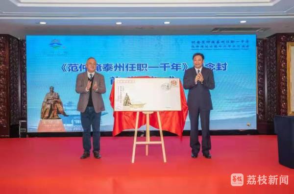 为纪念范仲淹泰州任职一千年,国家邮政部门专门发行了纪念封,泰州市外事办主任张兆洋与泰州邮政公司总经理俞泽昕共同为首日封揭牌。