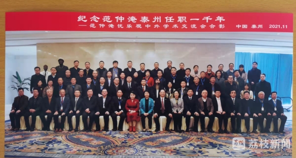 据悉,今年是范仲淹在泰州任职 1000 年,作为范仲淹曾经任职地,泰州举办范仲淹忧乐观中外学术交流会,旨在推动范仲淹研学联盟建设,传承弘扬范仲淹爱国为民情怀,深入挖掘范仲淹千年忧乐观的时代价值,让范仲淹忧乐观为社会主义现代化建设提供强有力的精神力量和文化支撑。会议发出关于成立范仲淹忧乐观研学联盟的倡议,发布了研学线路。