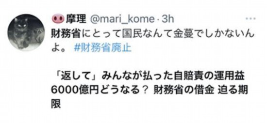 看到这篇文章,大量日本网友感到愤怒,有多名网友“催债”要求财务省偿还,还有网友呼吁解散财务省,甚至有网友批评道,“在财务省眼里日本国民只是颗摇钱树。”