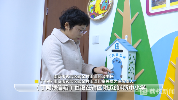 南京市玄武区锁金村街道儿童关爱之家负责人、南京市玄武区锁金村街道民政主任丁冬冬介绍:“(丁阿姨信箱)也设在辖区附近的4所中小学,主要是针对一些家庭暴力、未成年人受欺凌的相关情况,或者有一些想倾诉的问题都可以投入信箱。这个信箱定期开启,给大家提供我们力所能及的保护。”锁金村街道有退伍老兵2000多人,是珍贵的宝藏资源,儿童“关爱之家”的红色教育基地,已经迎来了400多名孩子们和老兵们,一起读书、看报、听讲红色故事。