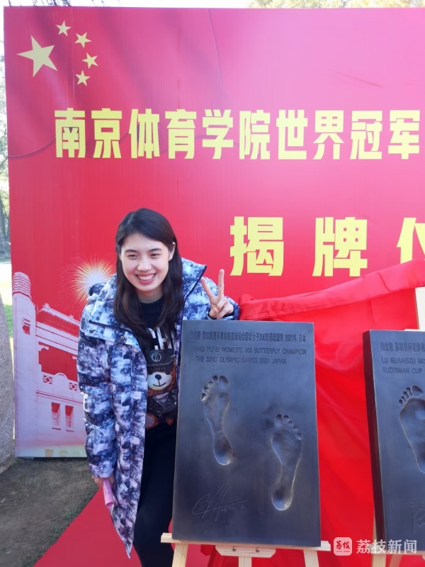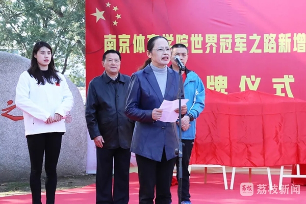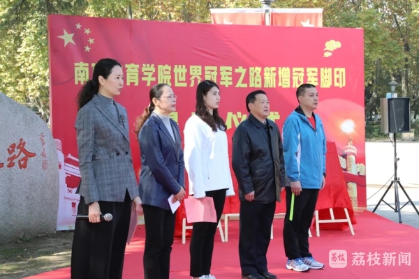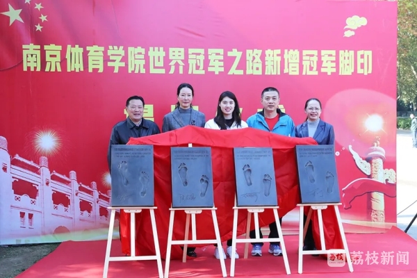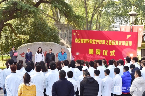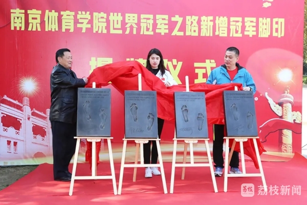 11月12日上午11点,南京体育学院新增冠军脚印揭牌仪式在世界冠军之路北端举行。校党委常委、副校长李江、金松、肖爱华,奥运冠军、世界冠军代表张雨霏,奥运冠军教练崔登荣出席仪式。肖爱华主持仪式。