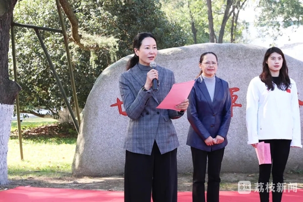 李江在仪式上讲话。她介绍了世界冠军之路建设的初衷和近年来“新南体”建设取得的重要成就。她说,2021年,南体在短短3个多月内新增世界冠军4人,培养的世界冠军总人数达到105人,因而学校启动世界冠军之路续建工作并采集新增世界冠军脚印。她强调,要充分发挥世界冠军之路的精神引领作用,激励引导师生员工凝心聚力开启“新南体”建设新篇章,全面助力体育强国建设,为实现中华民族伟大复兴的中国梦贡献更大力量。