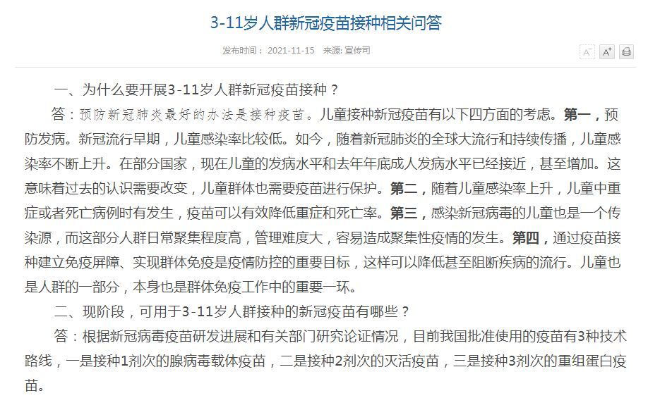 一、为什么要开展3—11岁人群新冠疫苗接种?