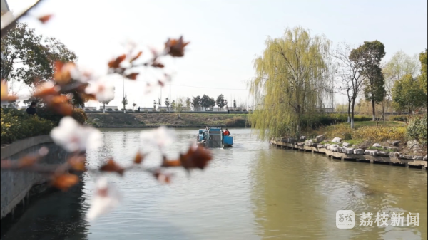 早晨在河边晨练,傍晚在河边散步。在盐都区大冈镇佳富村九九河,长一千米的河道河水清澈,在绿化的掩映下更显村洁景美。河面上,保洁人员正打捞水面漂浮垃圾和水草,确保河道清洁、环境整洁。佳富村村民孙宝凤说:“我们这里的河天天有人管、有人保洁,河面清爽,环境很好,早上可以在这边散散步,住在这里心情非常舒畅。”