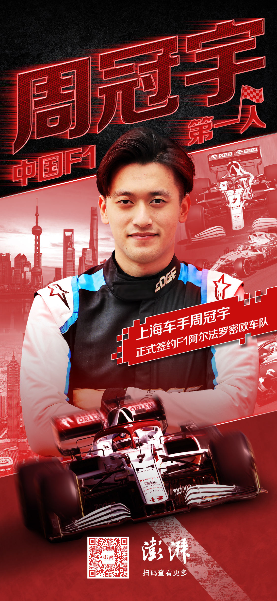 11月16日,F1阿尔法罗密欧车队宣布,来自中国上海的车手周冠宇和车队签约,22岁的他将作为正赛二号车手,出战下赛季F1世界锦标赛。