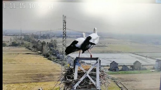东方白鹳是国家一级保护野生动物,自从它们来到扬州,这一“国保”就备受关注。今年,为了更好保护东方白鹳,高邮相关部门为它们在高压铁塔上建设了人工鸟巢,同时还在铁塔安装了公共视频,全天候记录它们的生活,以便于深入研究它们的习性。高邮大昌村的公共视频,从开机的那一刻起,就记录着一对“秀恩爱”的东方白鹳夫妻日常生活。