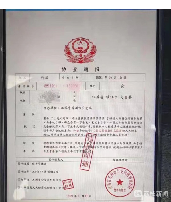 原来,11日上午10时左右,许某接到一通电话,对方自称苏州公安局民警,称其泄露公民信息案件,需要对其银行账户进行查处。并且,还出示“警官证”“协查通报”等证明文件,告知许某该案件为“国家二级保密案件”,有任何泄密情况都会加重刑罚。同时,诈骗分子要求当事人不要相信“96110”电话及“国家反诈中心”APP,称该案件存在公检法人员参案,会通过此方式欺骗当事人。