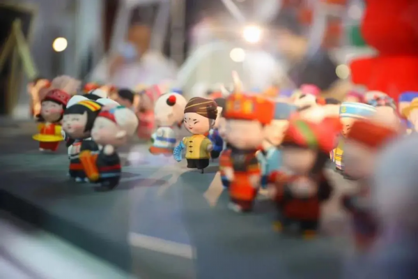 此次惠山泥人除了工艺美术大师的非遗作品外,还带了最新推出的以“阿福”“阿喜”IP系列为基础纯手工泥人盲盒系列。