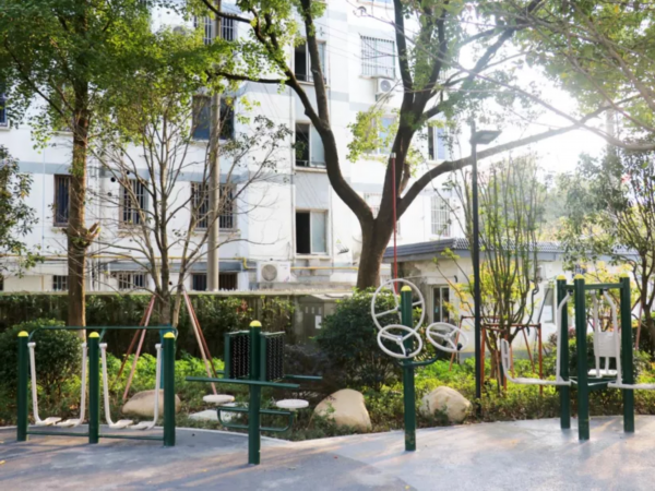 康泰苑口袋公园位于泰南路东侧,总面积1040㎡。公园将场地功能分为入口休闲区、健身活动区、边界绿化景观区三大功能区,通过人性化设计、植物铺装等方式体现康养型公园特色。