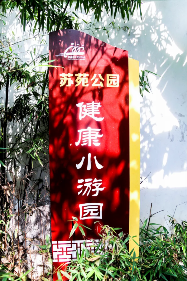 吴江实验初中附近的口袋公园则加设了一些游乐设施,景墙上的转轮、地上画着的“跳格子”、跷跷板……孩子们一定能在这里找到乐趣。