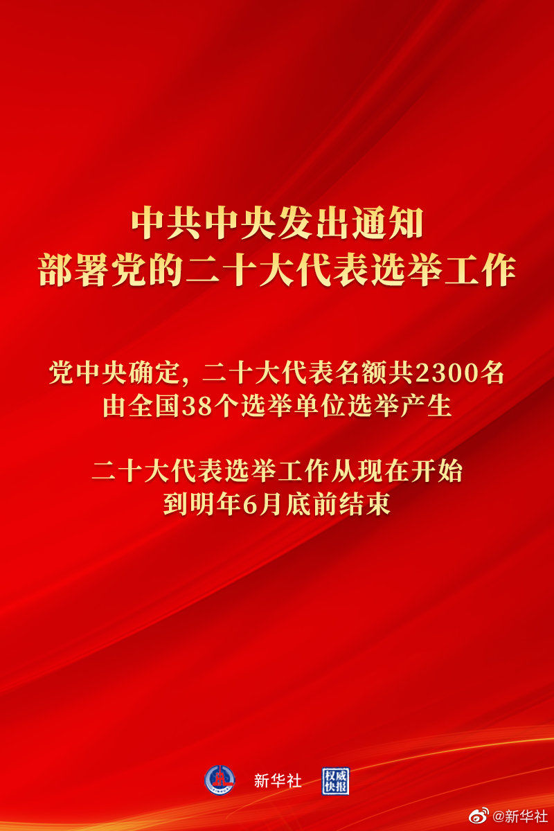 二十大代表选举工作从现在开始,到明年6月底前结束。