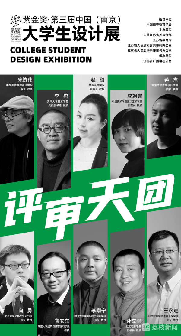 日前,由10位设计领域大咖及全国知名高校设计艺术专业顶尖专家等组成的“评审天团”——紫金奖·第三届中国(南京)大学生设计展作品评审委员会正式确定,这也意味着作品评审工作正式启动。评审天团将会怎样领航一场玩转艺术的奇妙之旅?