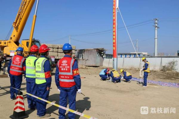在施工人员和大型起吊机的密切配合下,接触网第一杆成功组立。供电系统工程的开工,标志着S1线工程由站前土建工程正式进入站后设备安装工程施工阶段,为系统设备安装工程打出响亮的“第一枪”,向全线通车目标又迈进了一大步。