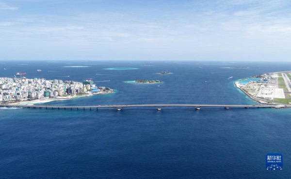 这是2019年8月30日拍摄的由中国援建的马尔代夫中马友谊大桥(无人机照片)。新华社发(王明亮摄)