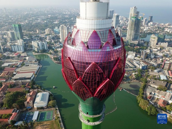 这是无人机航拍的斯里兰卡科伦坡莲花电视塔(2019年4月10日摄)。科伦坡莲花电视塔是中斯两国在“一带一路”建设中的重要合作项目。新华社记者 郭磊 摄