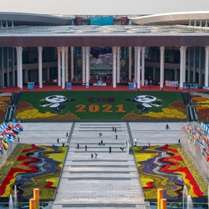 这是11月9日拍摄的国家会展中心(上海)南广场。第四届中国国际进口博览会11月5日至10日在国家会展中心(上海)举行。新华社记者 邬惠我 摄