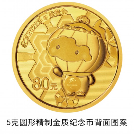 (一)5克圆形金质纪念币为精制币,含纯金5克,直径20毫米,面额80元,成色99.9%,最大发行量5000枚。