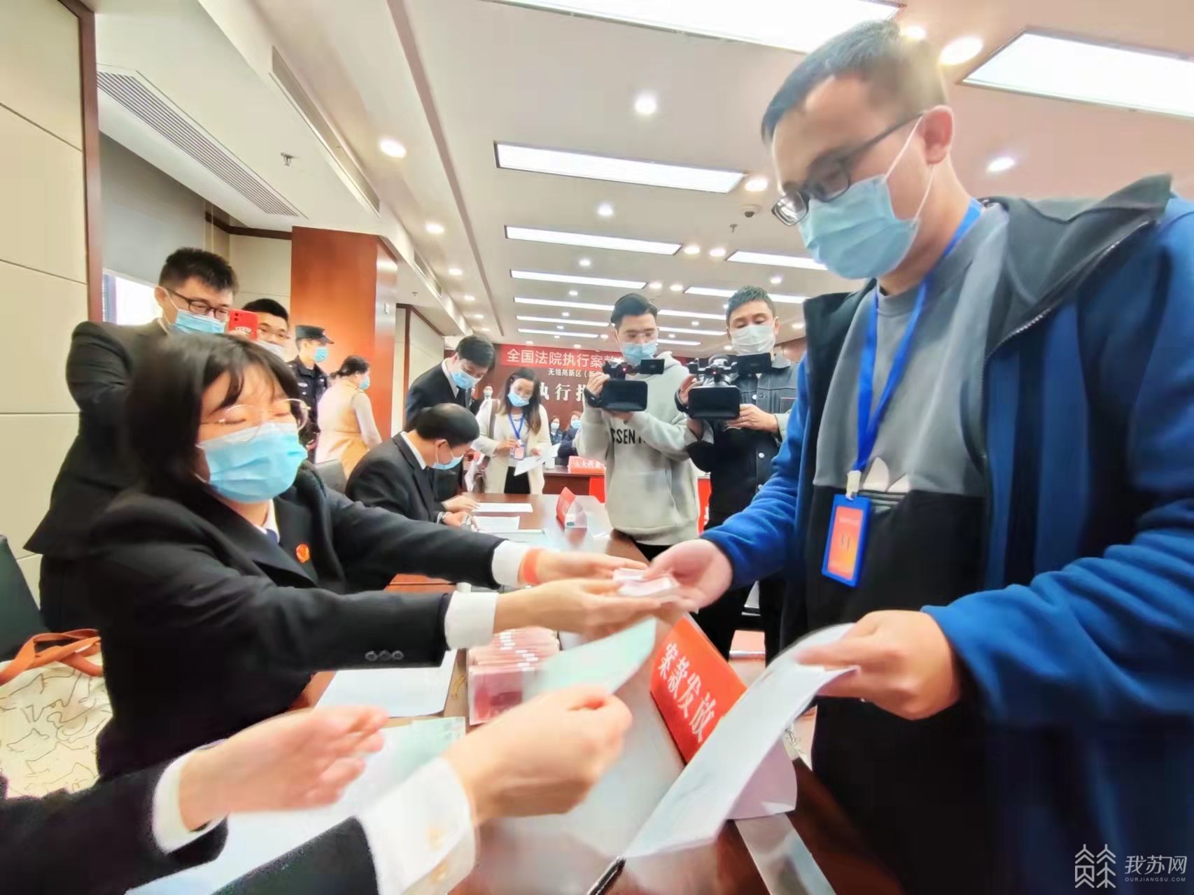 当日,惠山法院通过线上与线下相结合的方式,集中发放执行案款409万余元,其中线上发放执行案款380万余元,线下发放现金执行款29万余元。