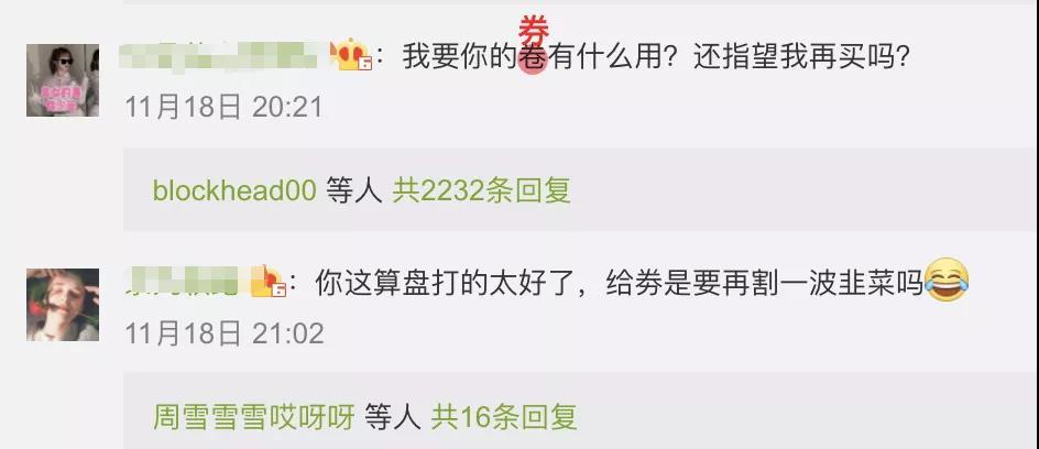 但是,多数网友并不买账,纷纷在留言区评论:“退差价”“要你的券有什么用,不会再买了”……