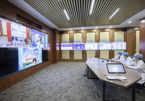 福建省泉州市第一医院医生在宁夏同心县人民医院通过远程会诊为同心县乡镇卫生院的医生提供指导(2020年9月18日摄)。新华社记者王鹏 摄