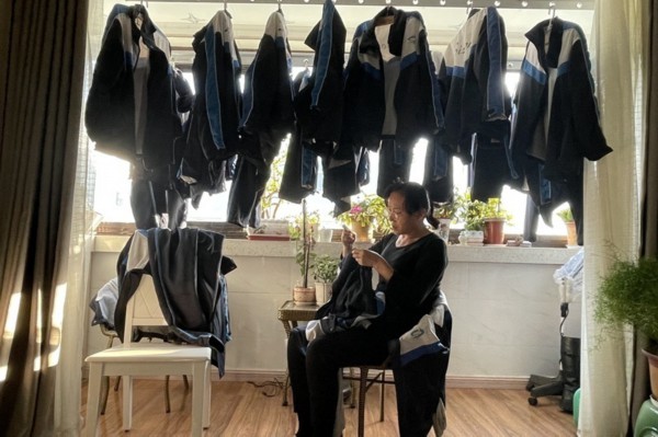 近日,宁夏固原市一名老师坐在挂满校服的阳台上缝补衣服的照片刷屏了朋友圈。