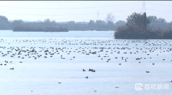 大纵湖景区总经理助理刘根成:“大纵湖从退渔还湖开始,生态环境是越来越好。湖里小鱼小虾、螺蛳都是鸟类喜欢的食物,所以鸟类都会选择在这边栖息过冬。很多重点保护鸟类,比如青头潜鸭、红冠、白琵鹭等,现在都已经成了大纵湖的‘常客’。”