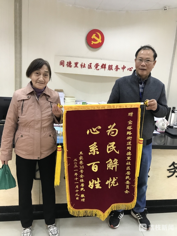 “我一个人在家太不方便了,幸亏你们处理及时。”昨天(11月20日),镇江市润州区宝塔路街道同德里社区工作人员们收到了来自辖区内居民陈奶奶的锦旗,感谢社区为居民们解决了安全隐患。