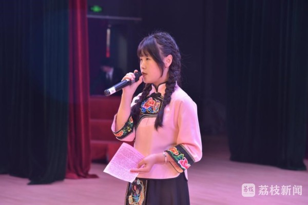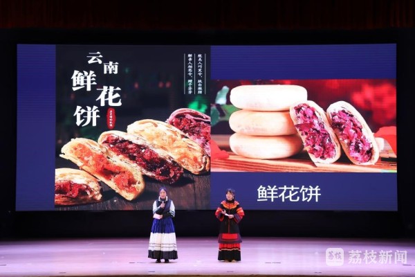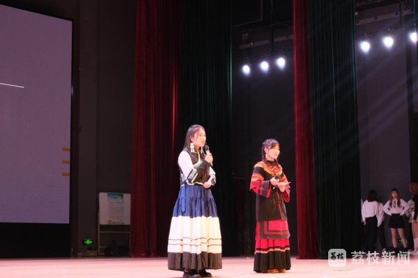 下午四点,在学校大礼堂舞台上,康养工程学院的两位彝族女生杨阿干和马艳,向师生们讲述《彝族新年》的故事。11月20日是彝族新年,两位同学今年是第一次在异地他乡过年,她们与现场师生共同分享家乡的特产——鲜花饼。