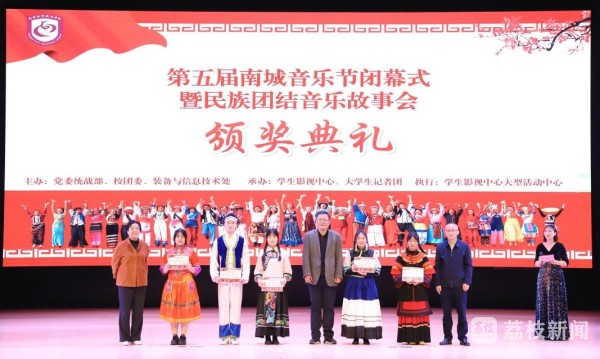 在民族团结音乐故事会后,还举行了以“南城民族大团结 同心共筑中国梦”为主题的第五届南城音乐节闭幕式,来自四个二级学院的13名同学登台表演,其中智能工程学院陈浩宇表演的《南京加油》和数字财商学院刘世聪表演的《七里香》获得一等奖。