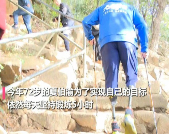 1975年,夏伯渝加入中国登山队,在攀登珠峰时因帮助队友,导致自己双小腿冻伤被截肢。
