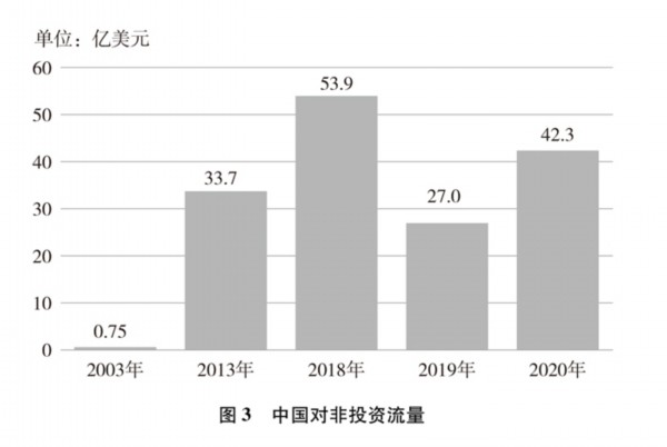 截至2020年底,中国企业累计对非直接投资超过430亿美元。中国在非洲设立各类企业超过3500家,民营企业逐渐成为对非投资的主力,聘用非洲本地员工比例超80%,直接和间接创造了数百万个就业机会。
