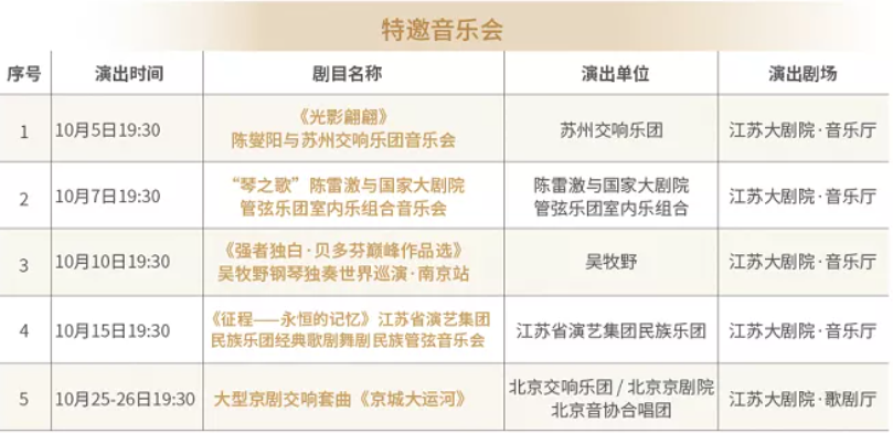 是的,即便你尚未发现,但不得不说,音乐的确环绕在我们的身边,充盈、丰富。 适逢2021紫金文化艺术节,舞台艺术系列演出精彩纷呈。其中,5场特邀音乐会在江苏大剧院上演,中西合璧,名家名团名曲,可谓“如听仙乐耳暂明”! 来江苏大剧院音乐厅,让音乐治愈你的十月
