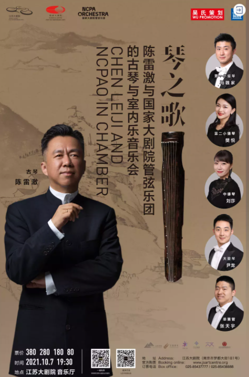 古琴,柔韧且顽强地流转了三千年,最具中国古代文人气质,亦最得中国古典美学意趣,高古、清逸、淡雅。 今年10月7日,琴技卓绝的广陵琴派传人,古琴演奏家陈雷激,将携手国家大剧院管弦乐团的演奏家们,亮相江苏大剧院,以古琴和西洋乐器的融合展示中西文化于声音之上的交流与对话,从不同维度探索东方古韵与西方古典的交汇之美。 本场音乐会的演出曲目既保留了经典古琴独奏曲目《流水》《平沙落雁》等观众耳熟能详的作品,又涵盖有2019年全球首演的新作品《劝君更尽一杯酒》。