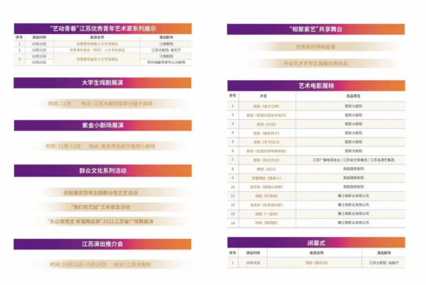 新创舞台剧目会演圆满收官,2021紫金文化艺术节进程过半。10月11日起,还将有哪些精彩接续上演?新创大型音乐作品会演、“艺动青春”展演、大学生戏剧展演、精品书画摄影艺术展览……一系列文艺“大礼包”,等你来查收↓↓