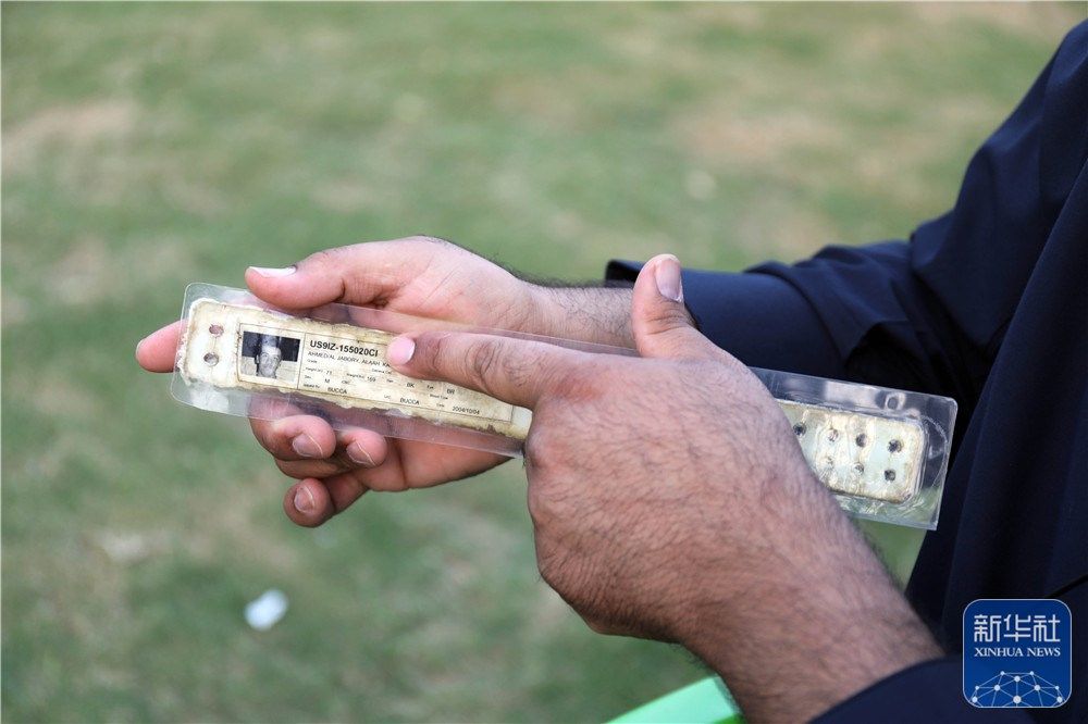 在伊拉克萨拉赫丁省杜鲁亚镇,阿拉·卡里姆·艾哈迈德展示被美军监禁时佩戴的手环(11月2日摄)。新华社发