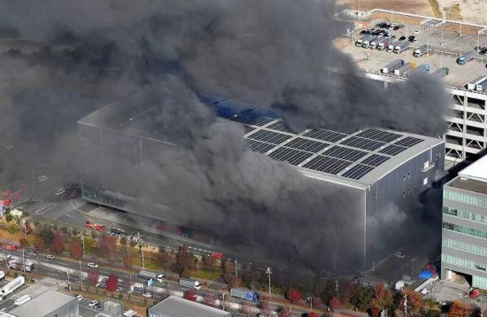 “日立物流”仓库29日突发火灾(图片来源:《每日新闻》)