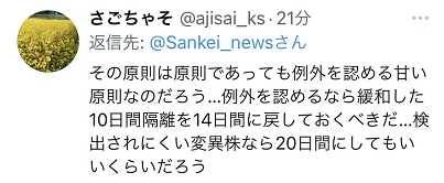 还有网友批评,日本政府口中的原则是“即使有原则也会允许例外存在的宽松原则吧...”如果承认例外那应该把隔离期限提到20天。