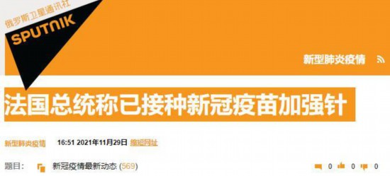 俄罗斯卫星网刚刚消息,法国总统马克龙表示,自己已接种新冠疫苗加强针。