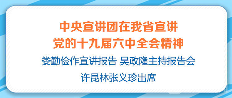 荔枝新闻讯 按照中央统一部署,11月29日,学习贯彻党的十九届六中全会精神中央宣讲团宣讲报告会在南京举行。中央宣讲团成员、全国人大财政经济委员会副主任委员娄勤俭作宣讲报告。省委书记吴政隆主持报告会。省委副书记、代省长许昆林,省委副书记张义珍出席。