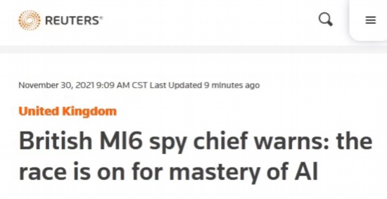 路透社:英国陆军情报六局局长警告称掌握人工智能的竞赛已经开始